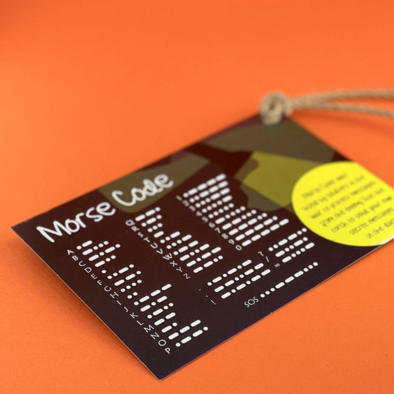 For the older explorers. Includes a real piece of rope, instructions for a hitch knot, and a Morse Code guide on the back.