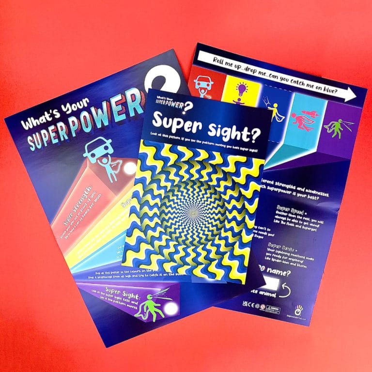 An A3 interactive mission. Complete five tasks to achieve Super Power status and tick them off with the included sticky stars.
